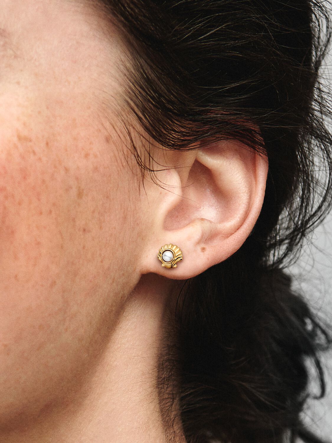 Come out of your shell with our Disney The Little Mermaid Seashell Stud Earrings. Each 14k gold-plated earring is detailed with realistic grooved lines and set with a luminous white lacquered artificial pearl. Add them to your collection as a reminder that there is an ocean of possibilities waiting for you.