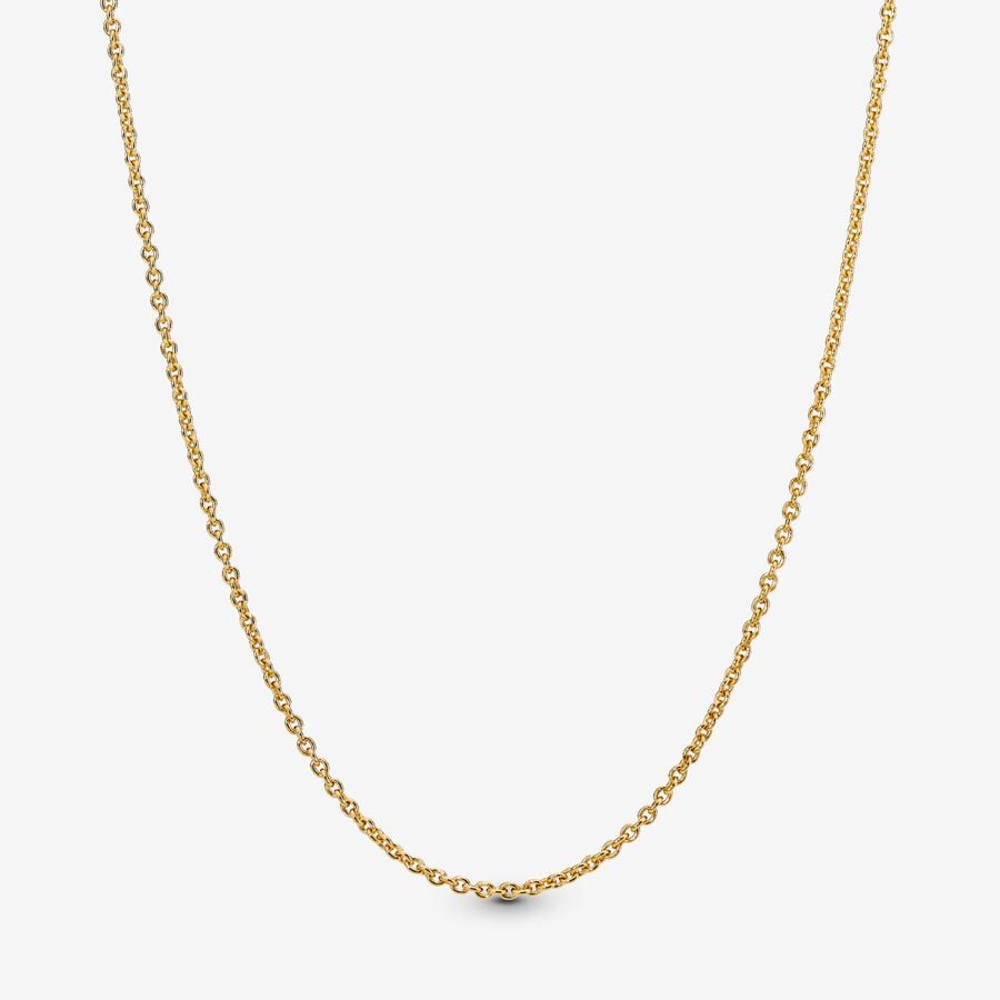Our classic Cable Chain Necklace, crafted from a 14k gold-plated unique metal blend, is the perfect carrier for O Pendants, as well as a versatile layering piece. The adjustable length means it complements both high and low necklines.